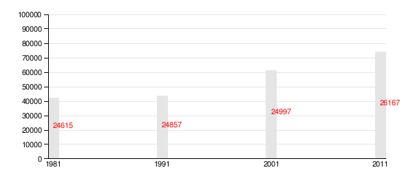 להלן טבלה הממחישה את התפתחות האוכלוסייה בעיר; וכן התפתחות האוכלוסייה בתצוגה גרפית: