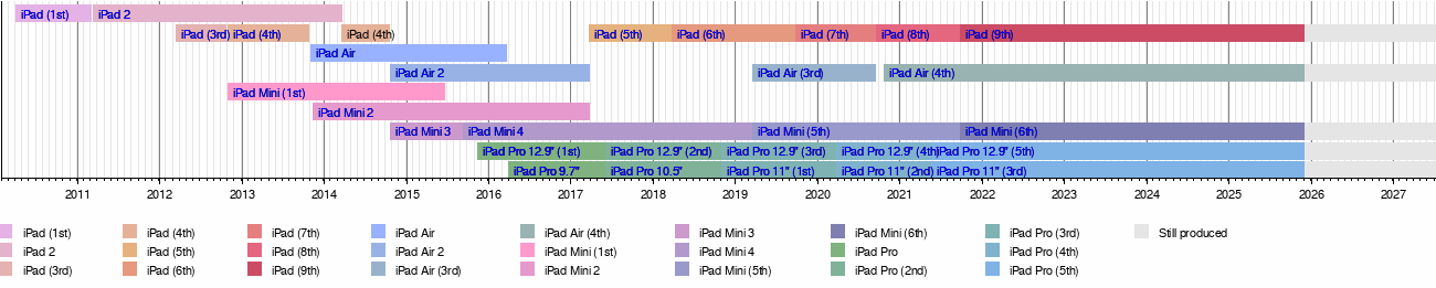 - אייפד אייר 2 – באוקטובר 2014 הוכרז הדור השישי של האייפד. הגרסה החדשה כוללת מעבד A8X.
