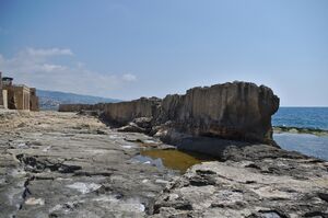 | שרידים פיניקיים בבתרון, ברקע מבנים מודרניים | |
